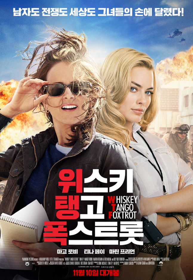 영화 "위스키 탱고 폭스트롯" 리뷰였습니다. 목숨은 무슨? 특종부터 잡고 보자라는 심정으로 종군 기자에 자원한 킴 베이커, 특종도 남자도 모두 내 거라는 욕심쟁이 마고 로비, 전쟁터가 내 집만큼 편안한 이안 맥그리거 그리고 전쟁터 한가운데서 전쟁 속에서의 리더로서 최선을 다하는 폴라넥 장군의 앙상블은 유머는 전쟁이라는 단어가 주는 심각함을 줄여주면서도 그 중심을 잃지 않는 훌륭한 스토리 텔링입니다. 인간의 도전, 배신, 사랑, 희생, 전쟁이 주는 그 무서움을 모두 균형 있게 다룬 영화라고 생각합니다. 서양의 문화와 아프가니스탄이라는 중동의 문화적 다름에서 오는 아슬아슬한 포인트를 영화적으로도 잘 녹여졌습니다. "위스키 탱고 폭스트롯"은 전쟁에서 무전을 칠 때 앞자리 단어를 헷갈리지 않게 표현하는 방법으로, 그 앞글자만 엮었을 때 생기는 단어 역시 감독의 센스를 잘 녹여냈다고 생각합니다. 개인적으로 너무 즐겁게 본 영화, "위스키 탱고 폭스트롯" 추천합니다. 재미있는 영화 리뷰로 또 돌아오겠습니다.