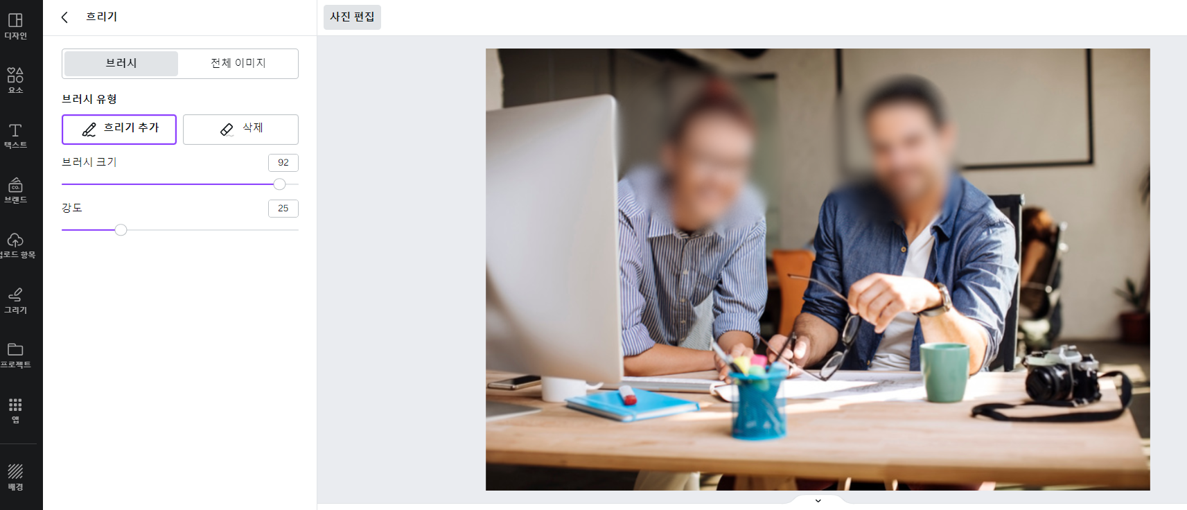 2. 왼쪽 상단의 <사진편집>을 클릭하면, 왼쪽 하단에 <흐리기> 라는 항목을 클릭해 줍니다.