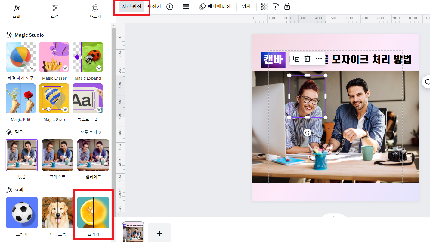 1. 원하는 사진을 가져옵니다. 저는 캔바에 있는 사진을 가져왔습니다.
